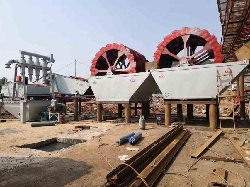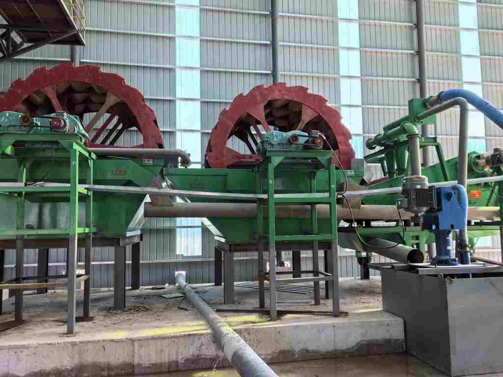 2、第二道轮斗洗砂设备和..道原理一样;但如果原料含泥量超过15%,建议第二道轮斗可以直接加入清水来水洗,进而..成品砂的品质;